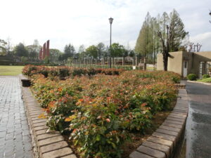 園内には色とりどりのバラが咲いており、見頃を迎えています。