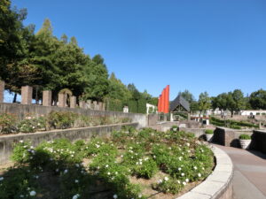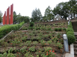 園内には色とりどりのバラが咲いており、