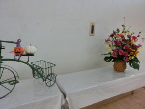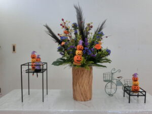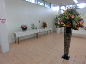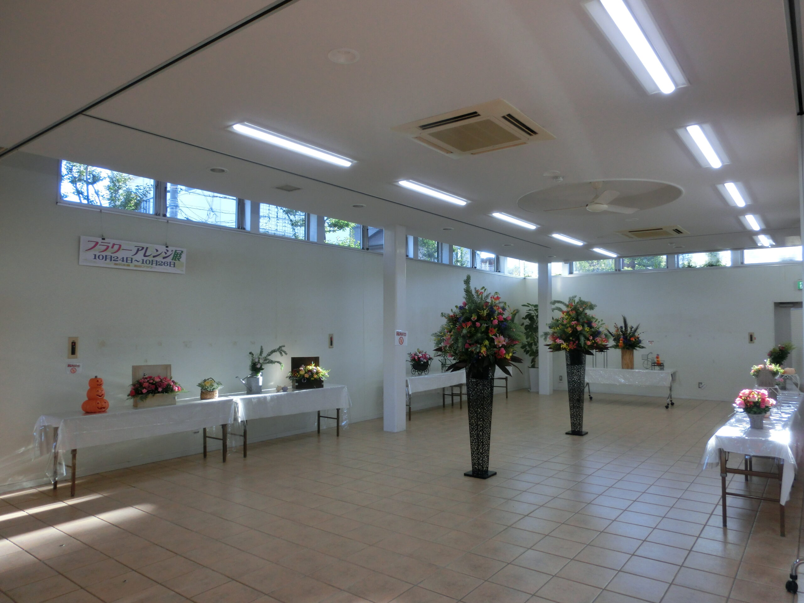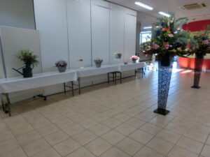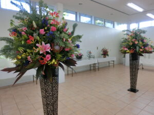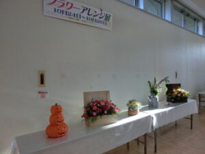 様々な種類のお花を使用したフラワーアレンジを展示しました。