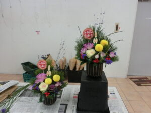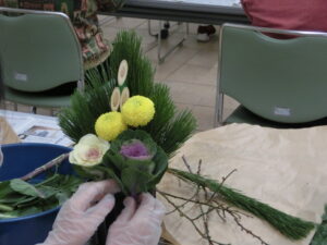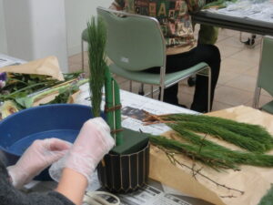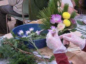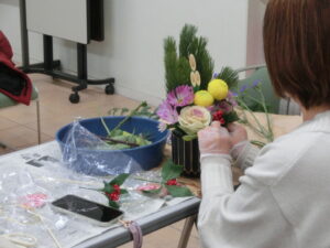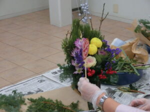 迎春に向けてのフラワーアレンジメントを作成しました。