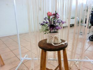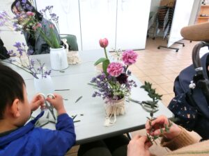 マクラメを使ったフラワーアレンジメントを作成しました。