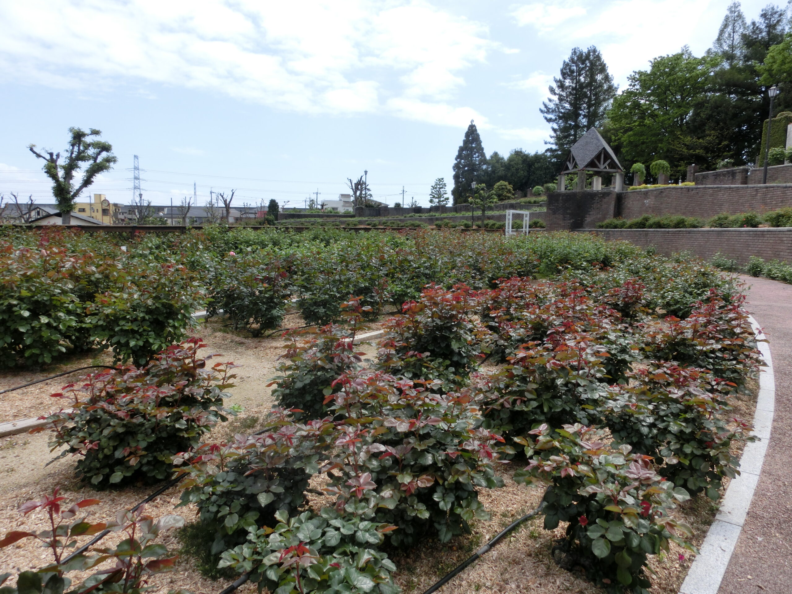 園内のバラは、新芽が少しずつ成長しています。