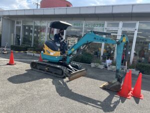 憧れのショベルカーに乗って写真撮影、キッチンカーお仕事体験フェスの1日目に沢山のご参加をいただきました。