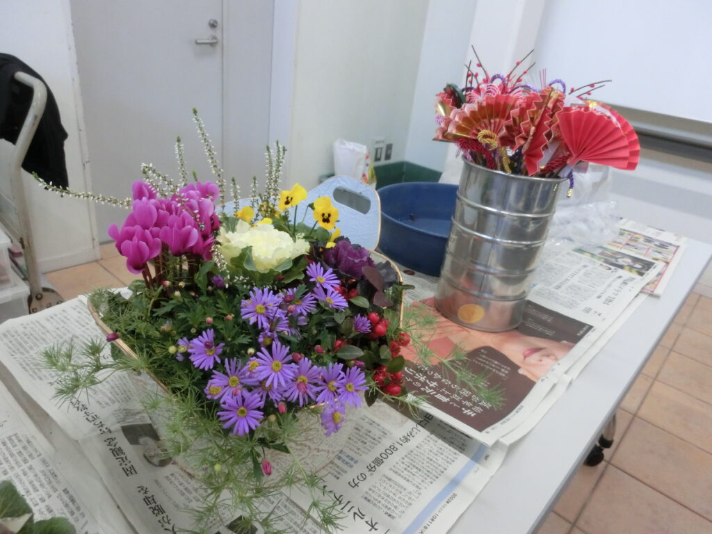 2025.12.21(日) 13:30~ フラワーアレンジ講習会 迎春に向けてのフラワーアレンジメントを作成しました。